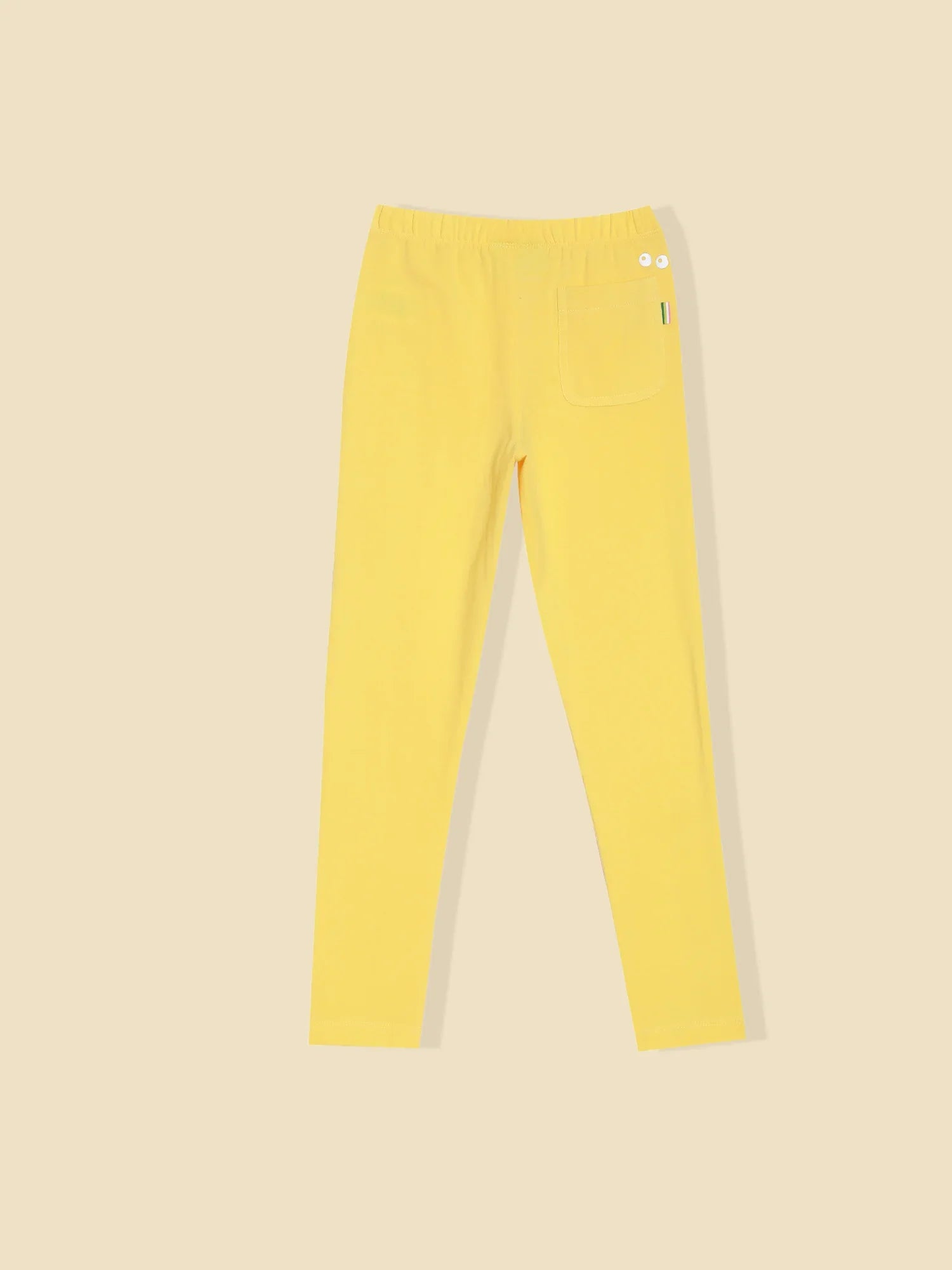 Walk through a field of sunflowers and lie down under the stars in your backyard in the Trendy Yellow Leggings. The leggings are stretchy,soft and breathable offering all-day comfort and a snug fit that moves with your child. with playful designs, beautifl embroidery and a functional back pocket, these leggings are trendy and functional for kids from 2 to 10. Fit: Regular Fabric: 95% cotton, 5% elastane, Single Jersey Care Instruction:Tumble dry in cold water with like colors;keep it fresh, do not bleach. Color: Yellow