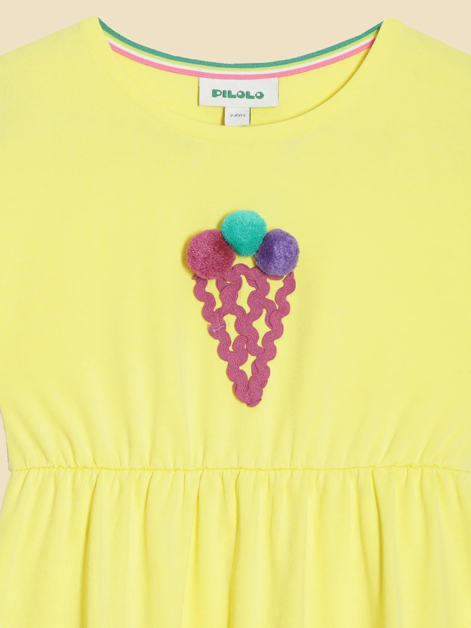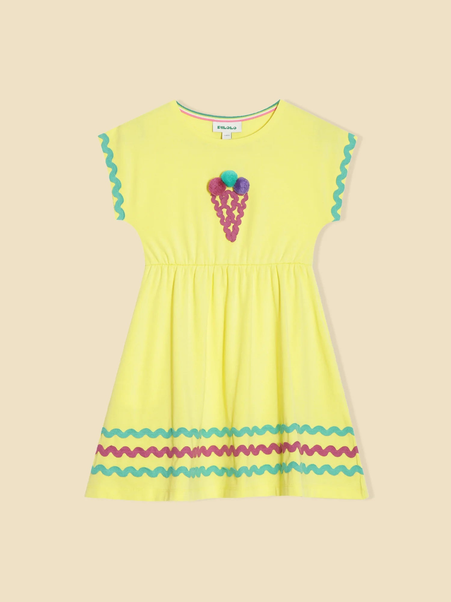 This Pilolo Kids Wear Dress captures the excitement of kids when they spot an ice cream truck. The ice cream motif and ric-rac detailing add an element of playfulness.