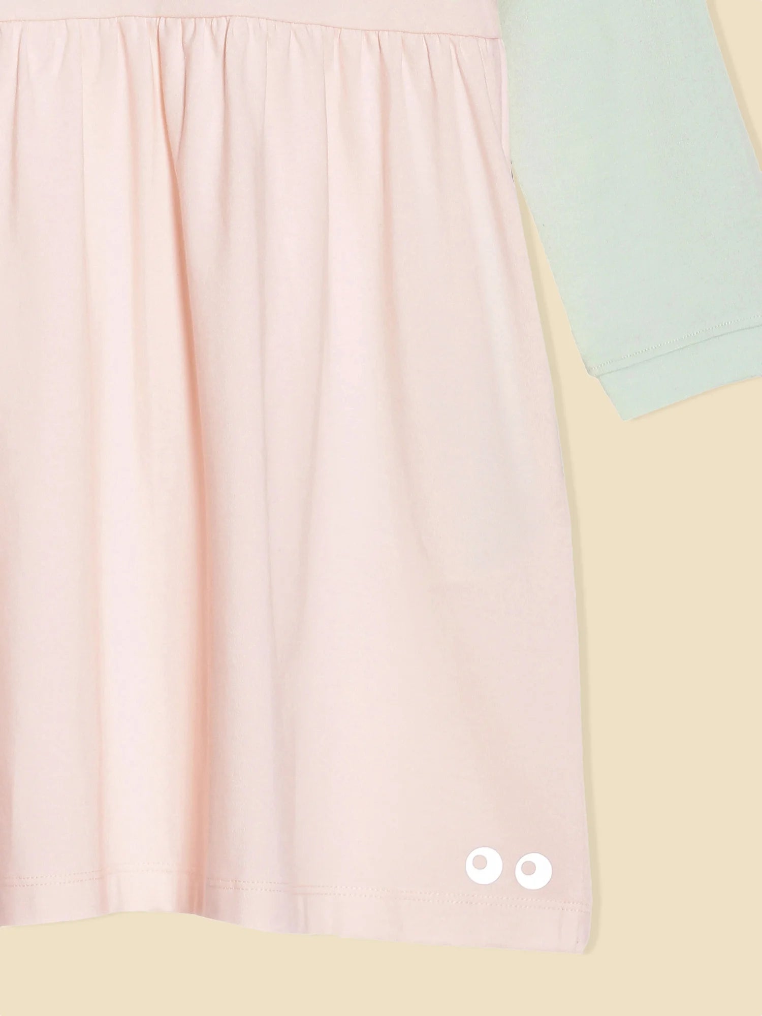 This children's dress is made from a beautiful, blended fabric: cotton for softness and stretch to give kids freedom of movement and comfort.