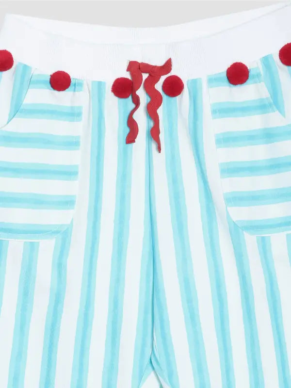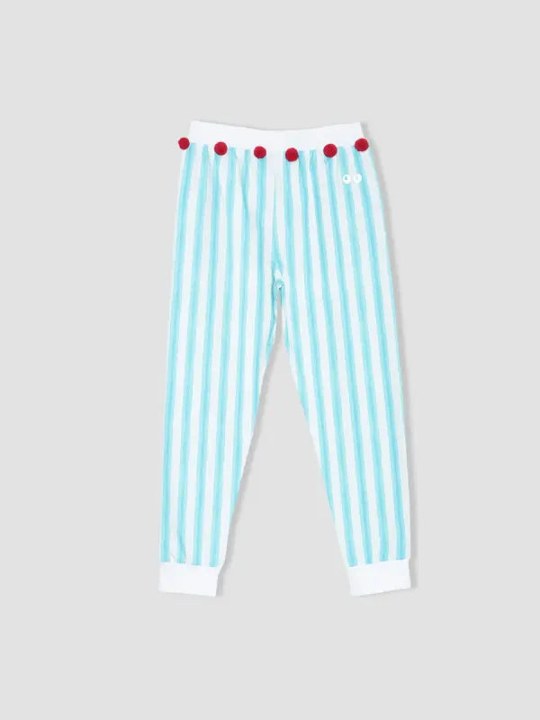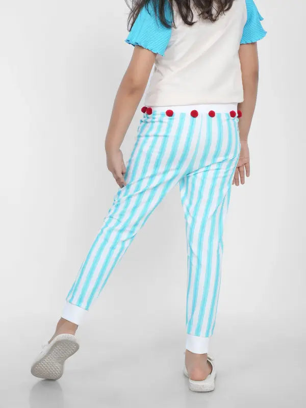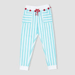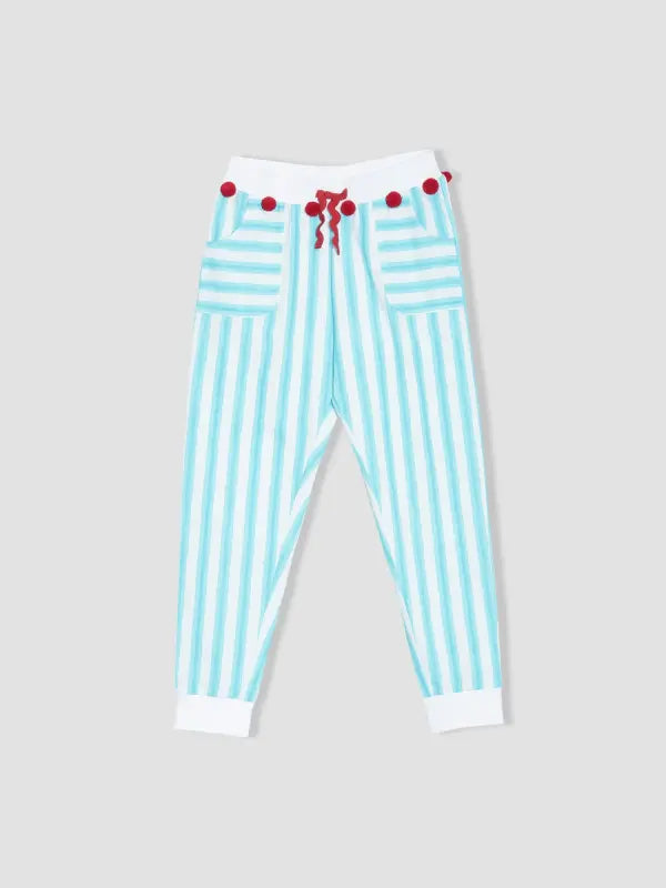 These Pilolo Kids Wear Joggers are perfect for playtime. They are adorned with vibrant blue stripes and contrasted with bright pink pompoms.