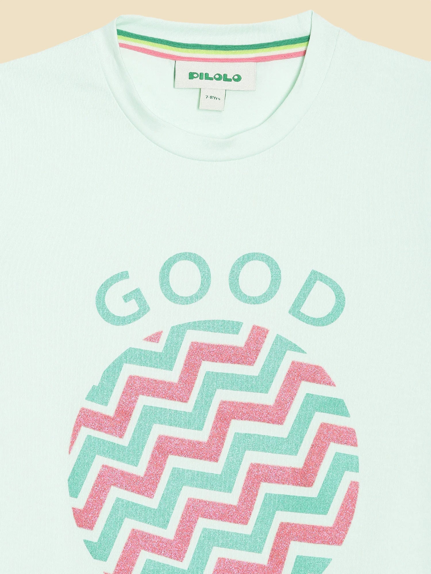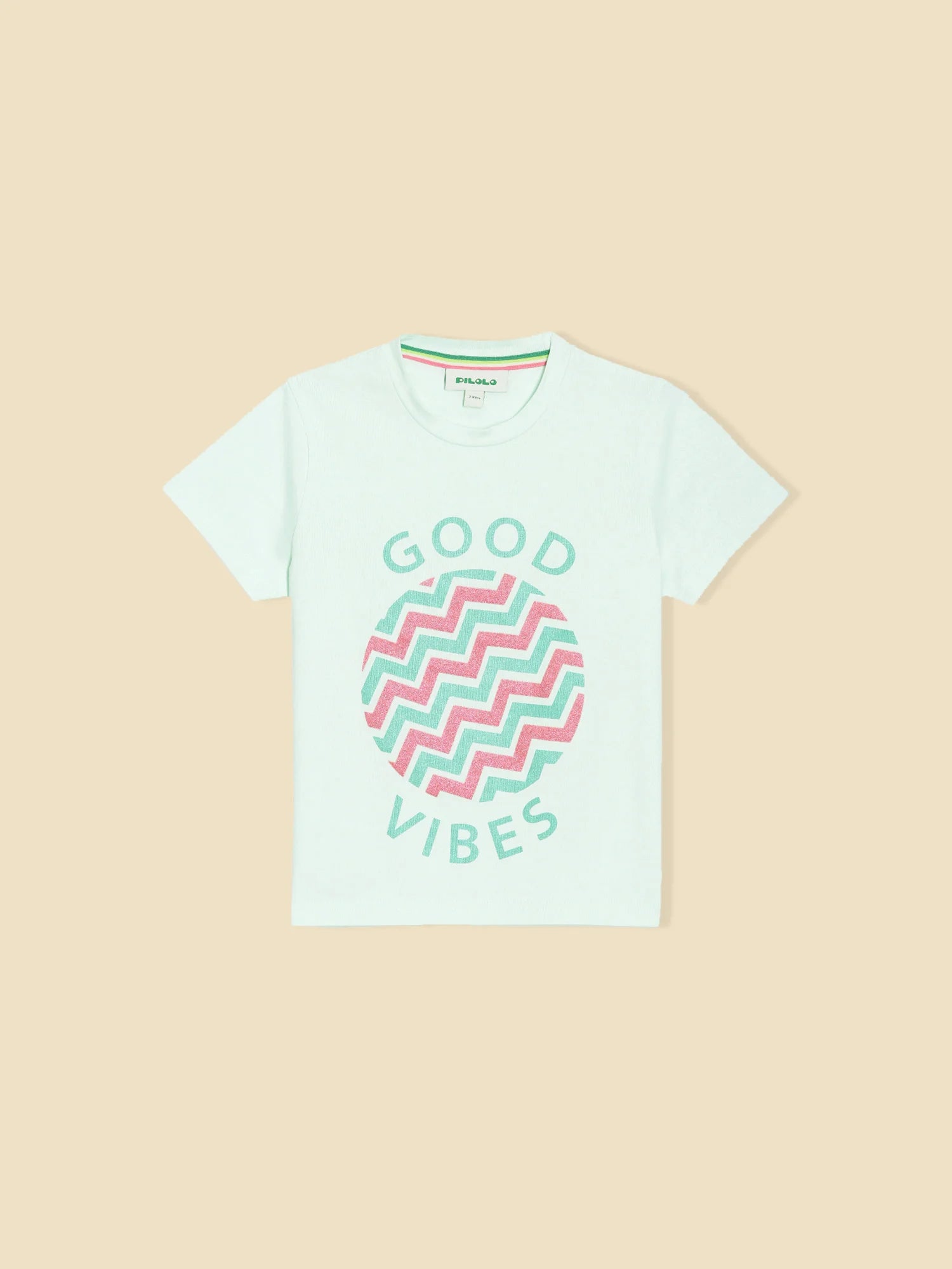 Good vibes only in this Pilolo Kids Wear T-shirt adorned with colourful pompoms and ric-rac!
