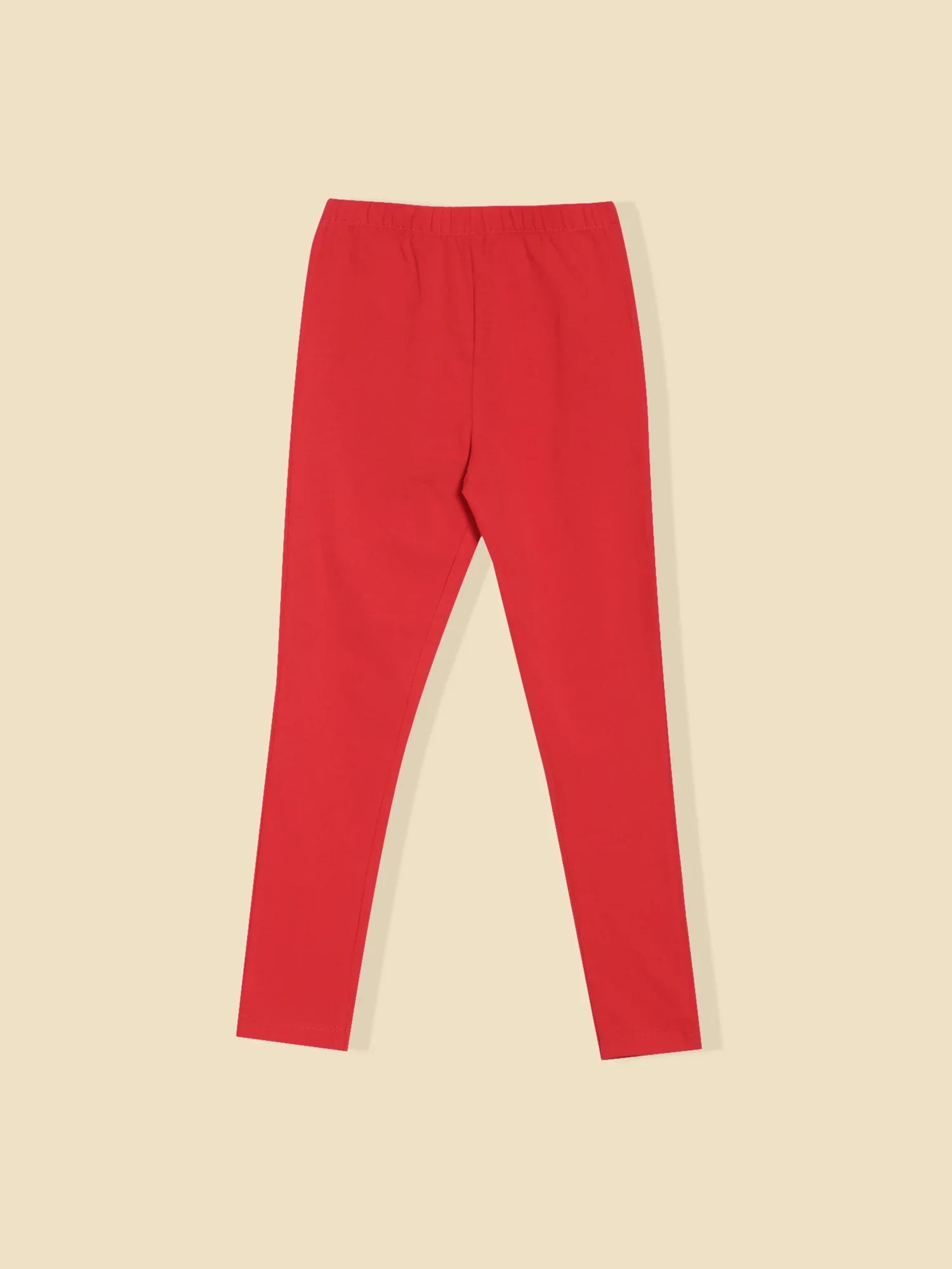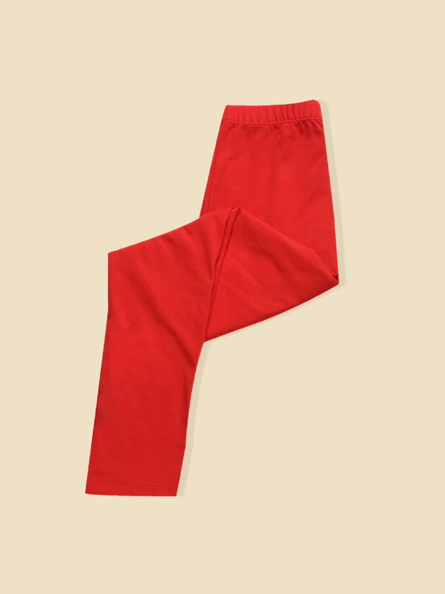 Dance and groove to your favorite tunes and balance on a log at the park in the Trendy Red Leggings. The leggings are stretchy, soft and breathable offering all-day comfort and a snug fit that moves with your child. with playful designs, beautiful embroidery and a functional back pocket, these leggings are trendy and functional for kids from 2 to 10. Fit: Regular Fabric: 95% cotton, 5% elastane, Single Jersey Care Instruction: Tumble dry in cold water with like colors; keep it fresh, do not bleach. Color: Red