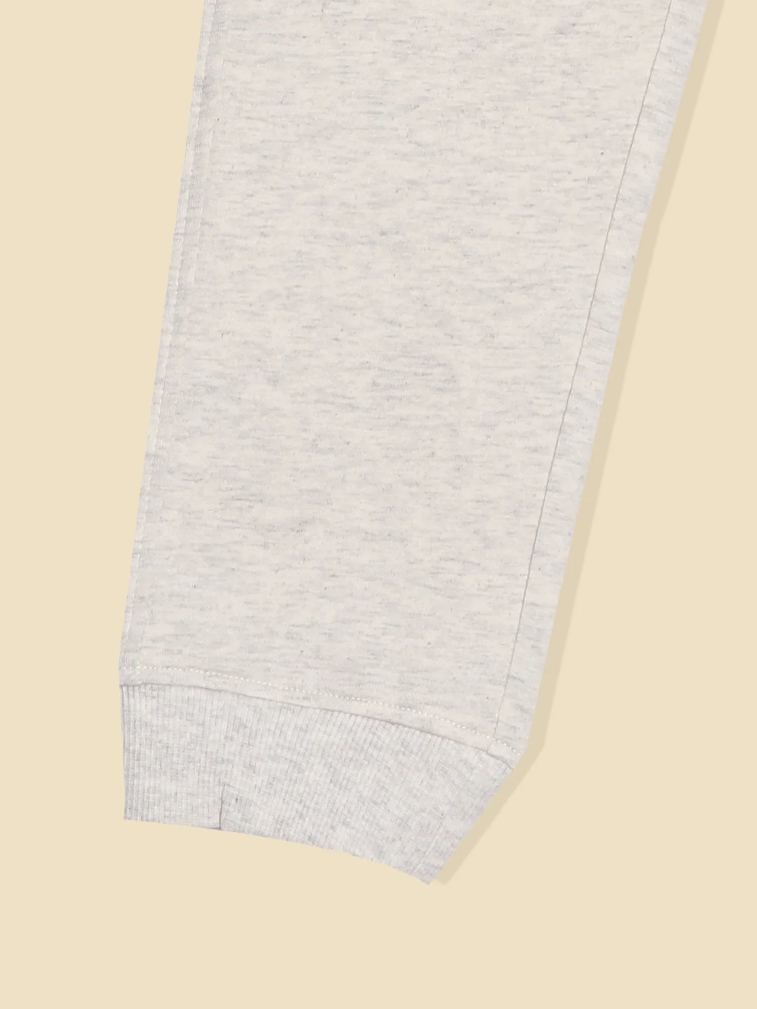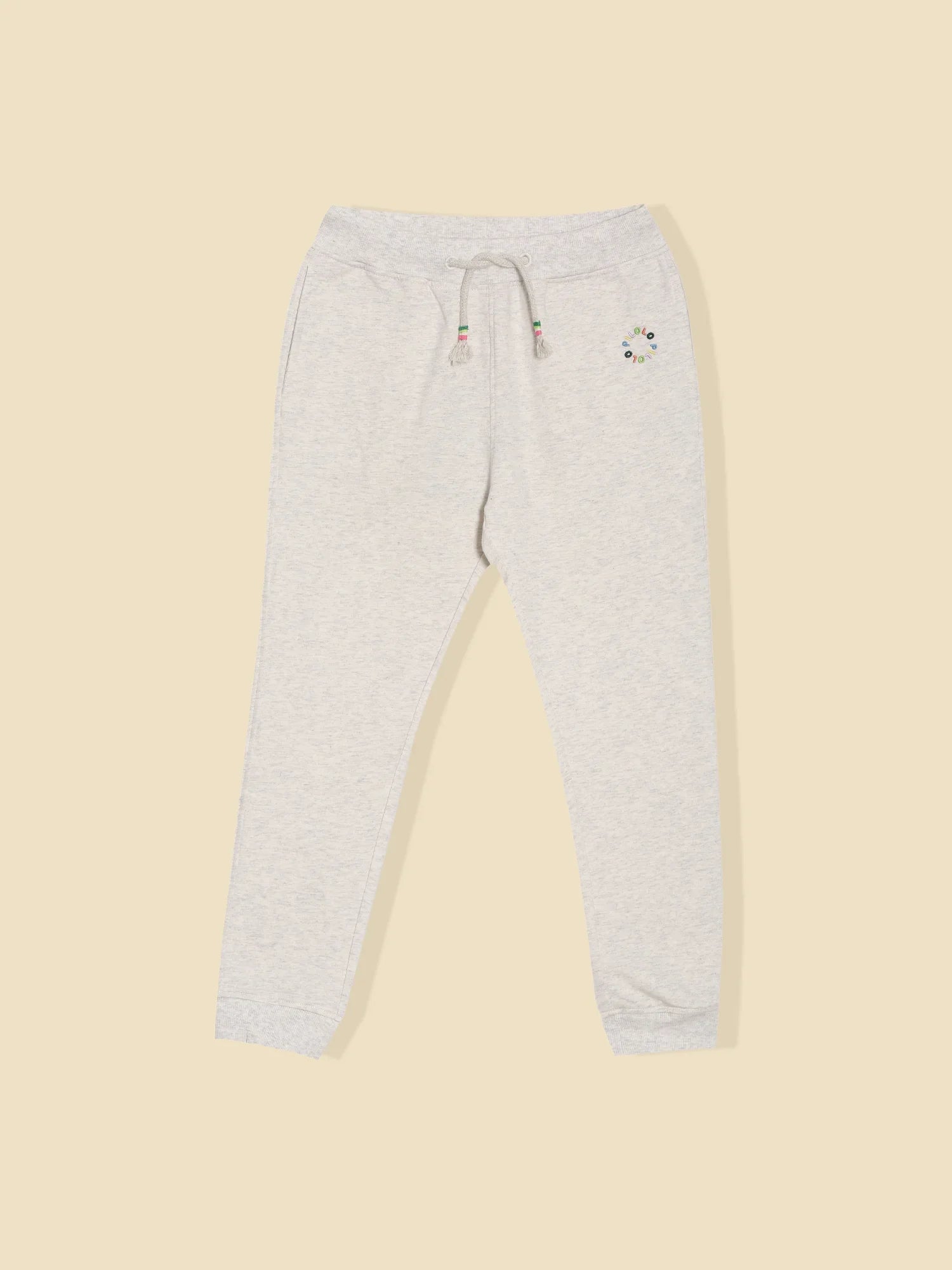 Go skating with friends or enjoy a sunset with family in the Active Melange Joggers. The joggers have aesthetic and practical uses as it features embroidery, pockets, an elastic waist, and drawstrings offering your child a firm fit. Fits kids from 2 to 10. Ideal for all-day play, functionality and that splash of excitement. Fit: Regular Fabric: 95% cotton, 5% elastane, French Terry Lycra Care Instruction: Tumble dry with cold water; keep it fresh, do not bleach. Waist: Mid-Rise Color: Melange Grey