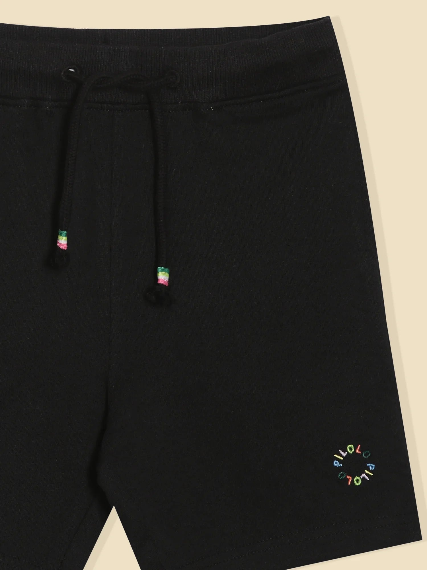 Everyday Black Shorts are designed from soft breathable fabric that offers comfort and style. The fun, colorful design have aesthetic and practical uses as it features embroidery, pockets, an elastic waist, and drawstrings offering your child a firm fit. The shorts are ideal for everyday adventures, special moments and a splash of fun. Explore the backyard or hunt for treasure. No dirt will show. Promise! Fit: Regular Fabric: 95% cotton, 5% elastane, French Terry Lycra Care Instruction: Tumble dry with cold water; keep it fresh, do not bleach. Waist: Mid-Rise Color: Black