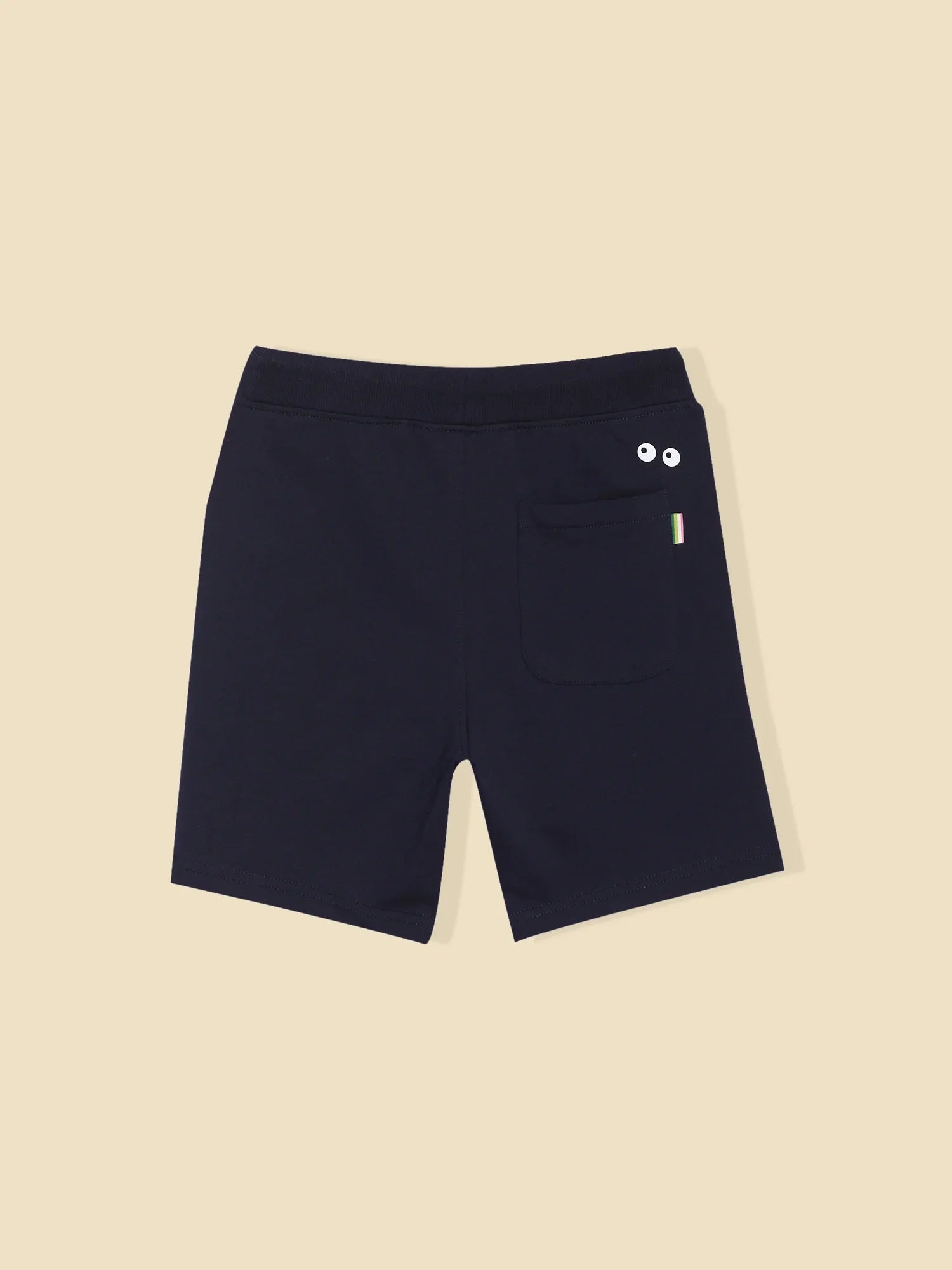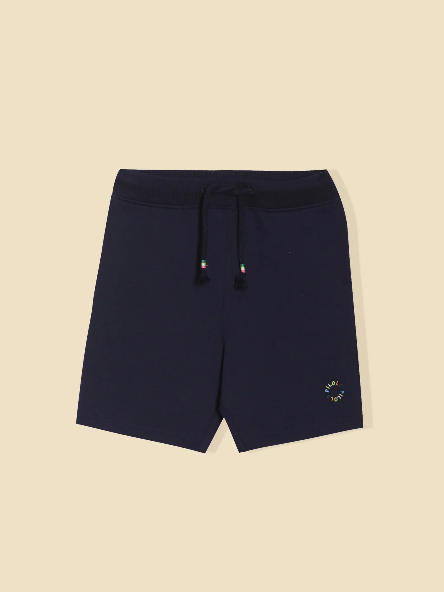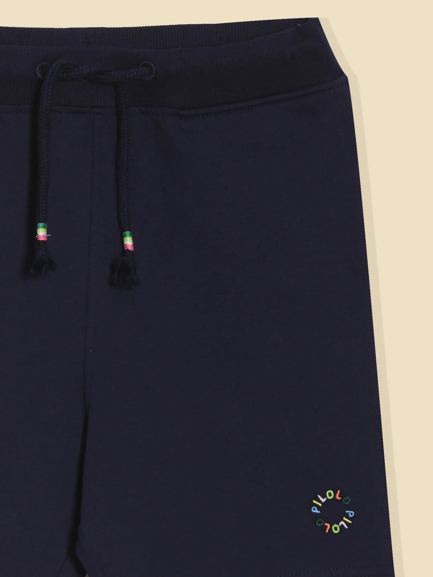 Everyday Navy Shorts are designed from soft breathable fabric that offers comfort and style. The fun, colorful design have aesthetic and practical uses as it features embroidery, pockets, an elastic waist, and drawstrings offering your child a firm fit. Wear it to the playground, a party, an adventure or splash in a puddle. Fit: Regular Fabric: 95% cotton, 5% elastane, French Terry Lycra Care Instruction: Tumble dry with cold water; keep it fresh, do not bleach. Waist: Mid-Rise Color: Navy Blue