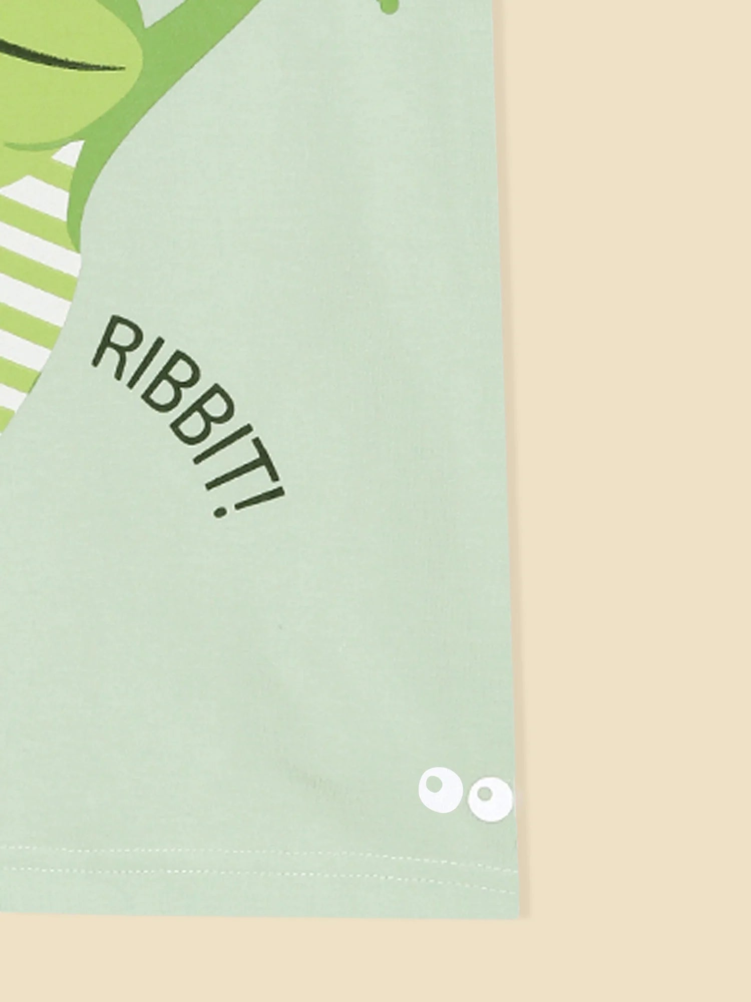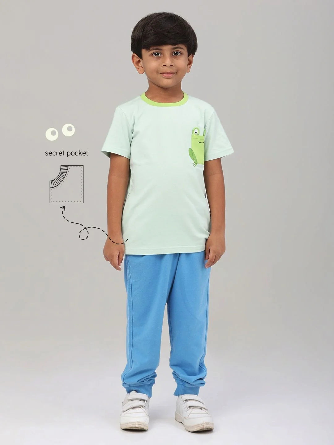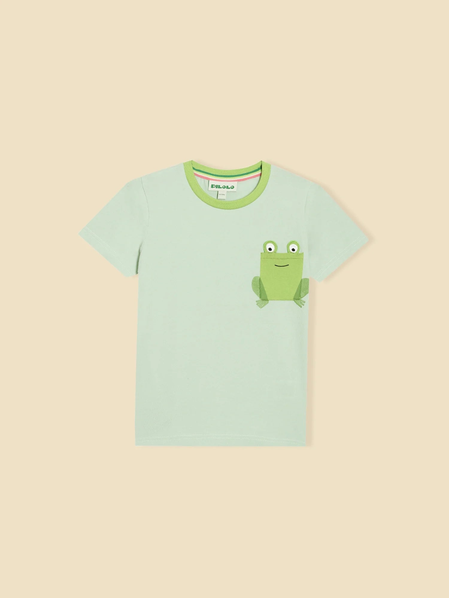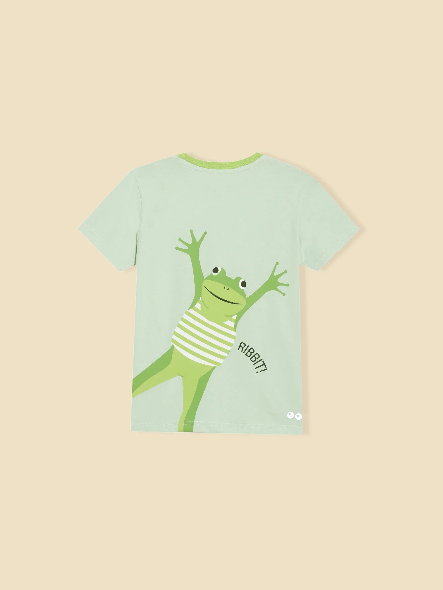Brighten up your kid's wardrobe with the Friendly Frog Tee to keep them cheerful through the day. The featured tee from our collectible tee collection, comes with a contrasting neckband, a frog pocket and back print. Every piece has a pocket that is adorable and practical - as little hands deserve a place to tuck their little adventures. Made to fit kids 2 to 10.