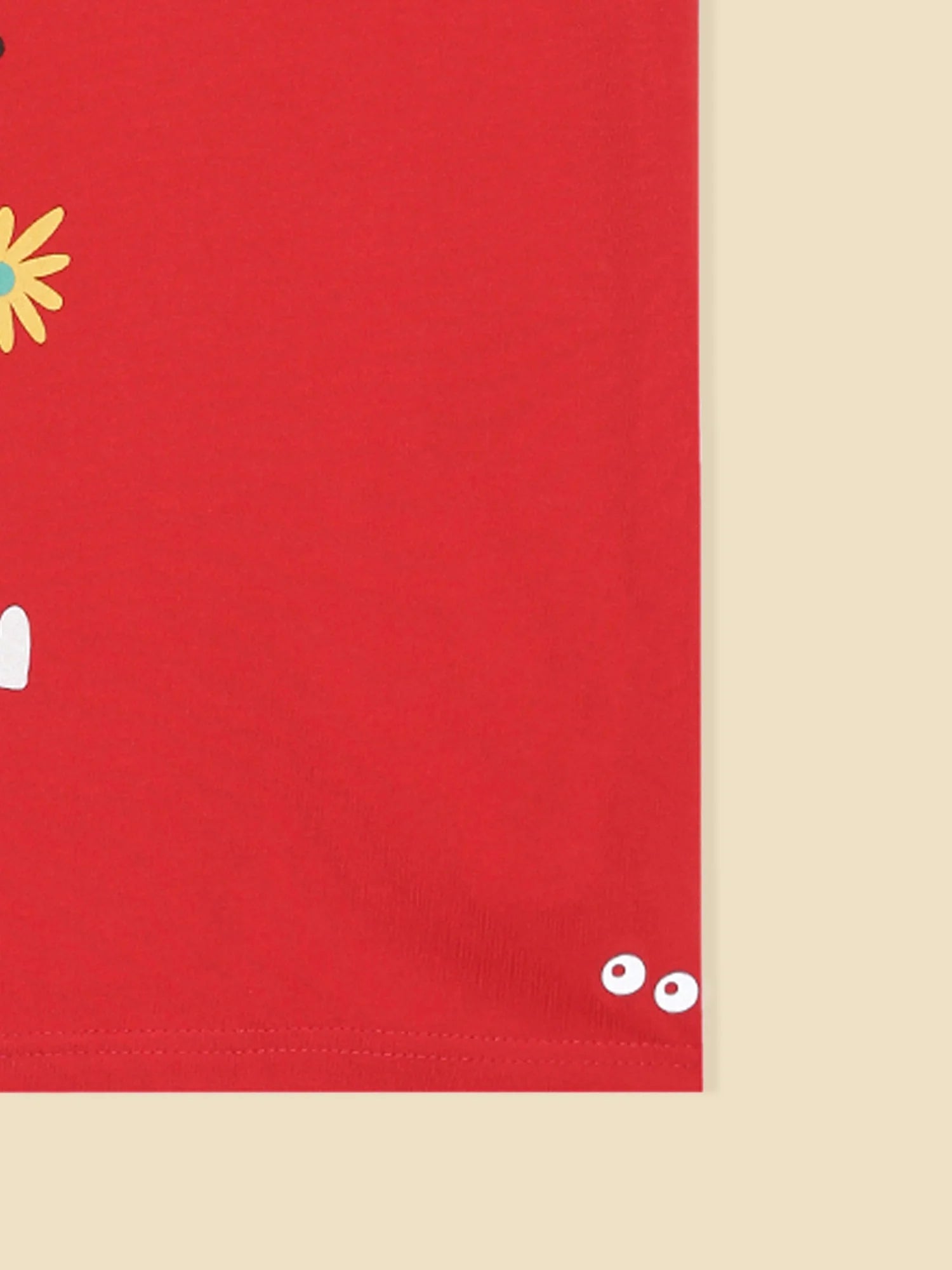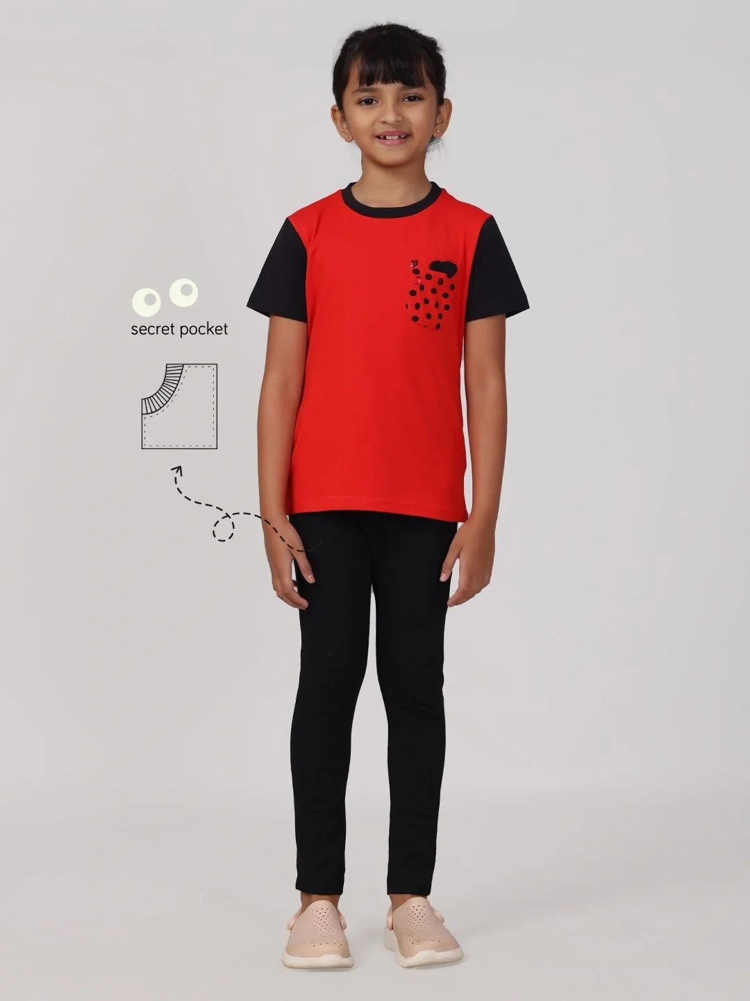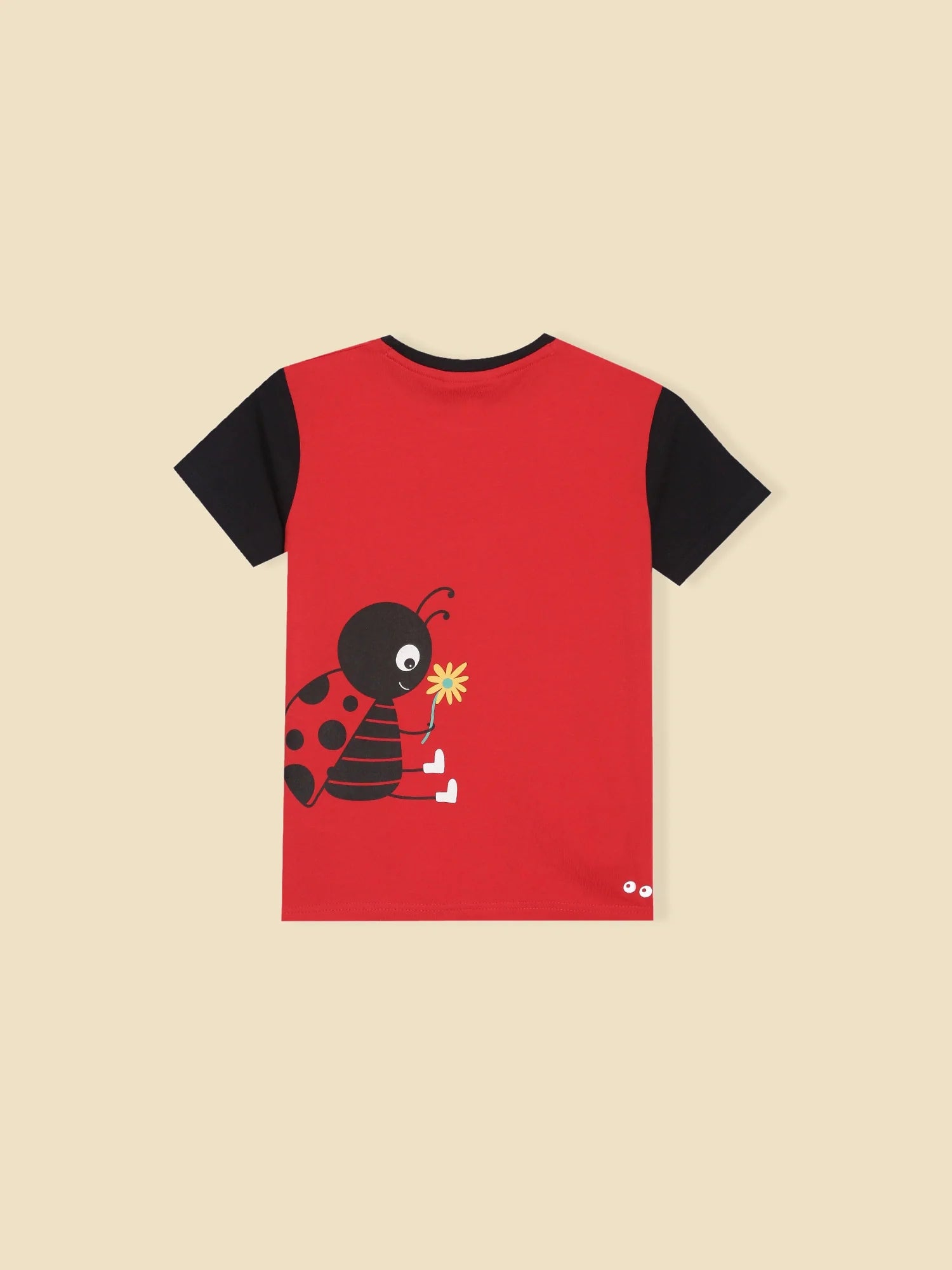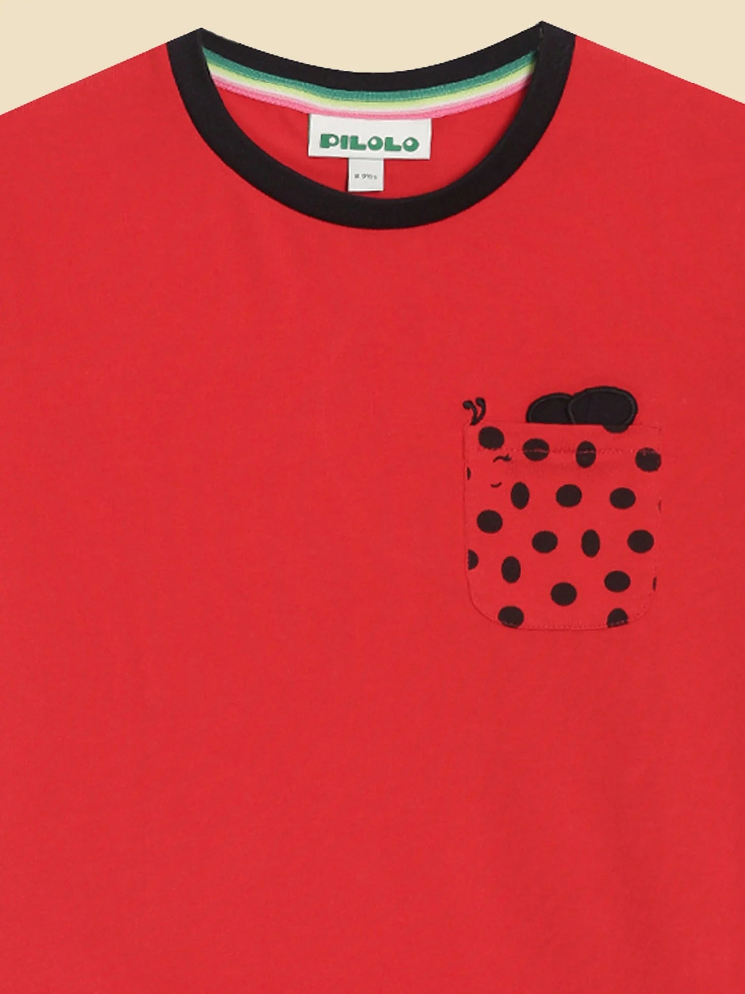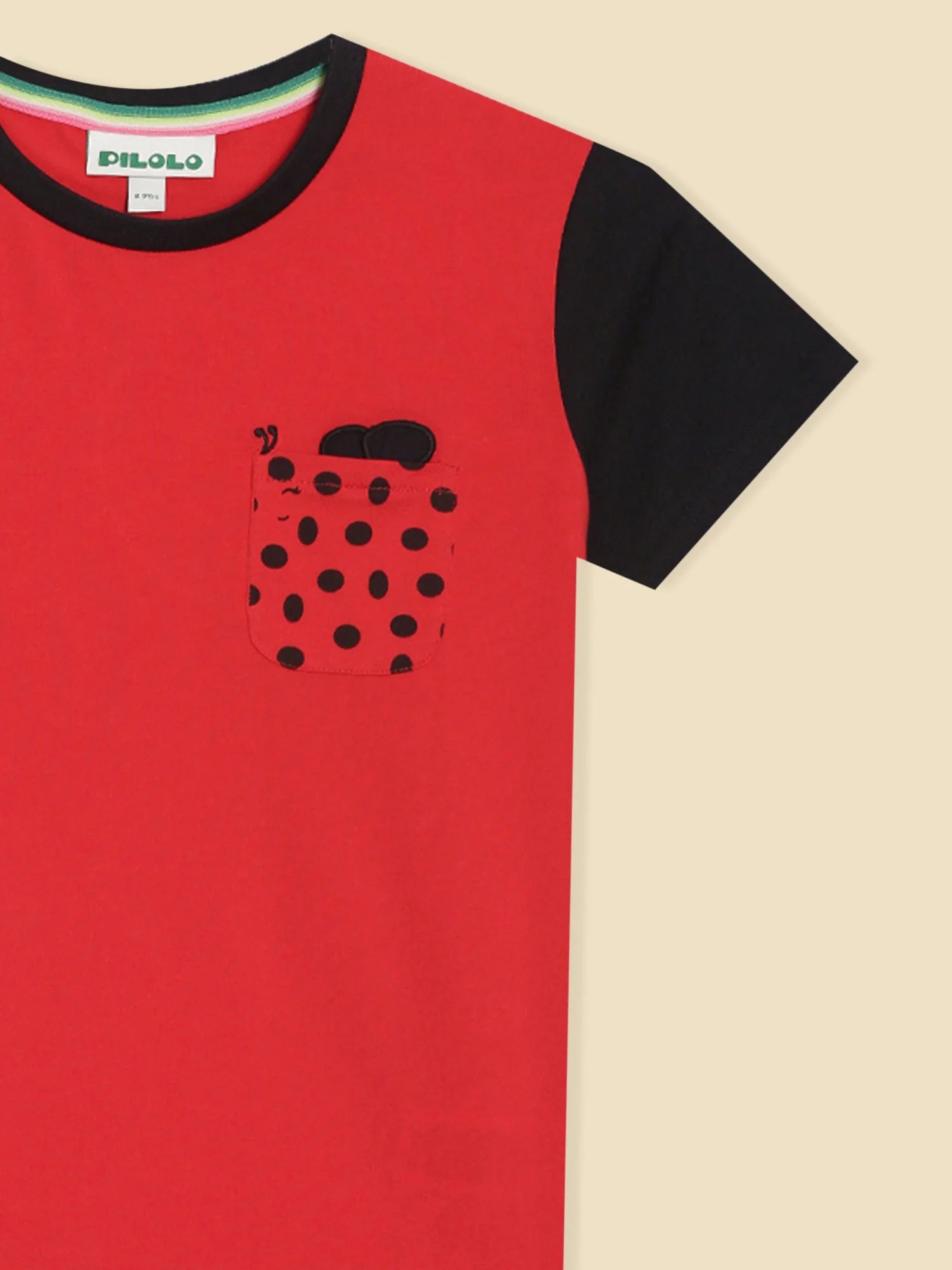 The Lively Ladybug Tee adds a pop of cheer to any day and brings a touch of whimsy with its charming ladybug design and keep your little one buzzing for joy. The featured tee from our collectible tee collection, comes with a contrasting neckband, a ladybug pocket and back print. Every piece has a pocket that is adorable and practical - as little hands deserve a place to tuck their little adventures. Made to fit kids 2 to 10.