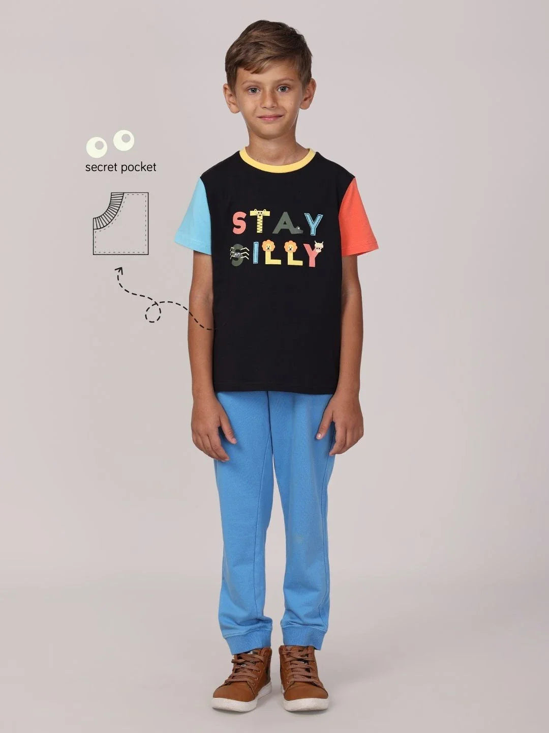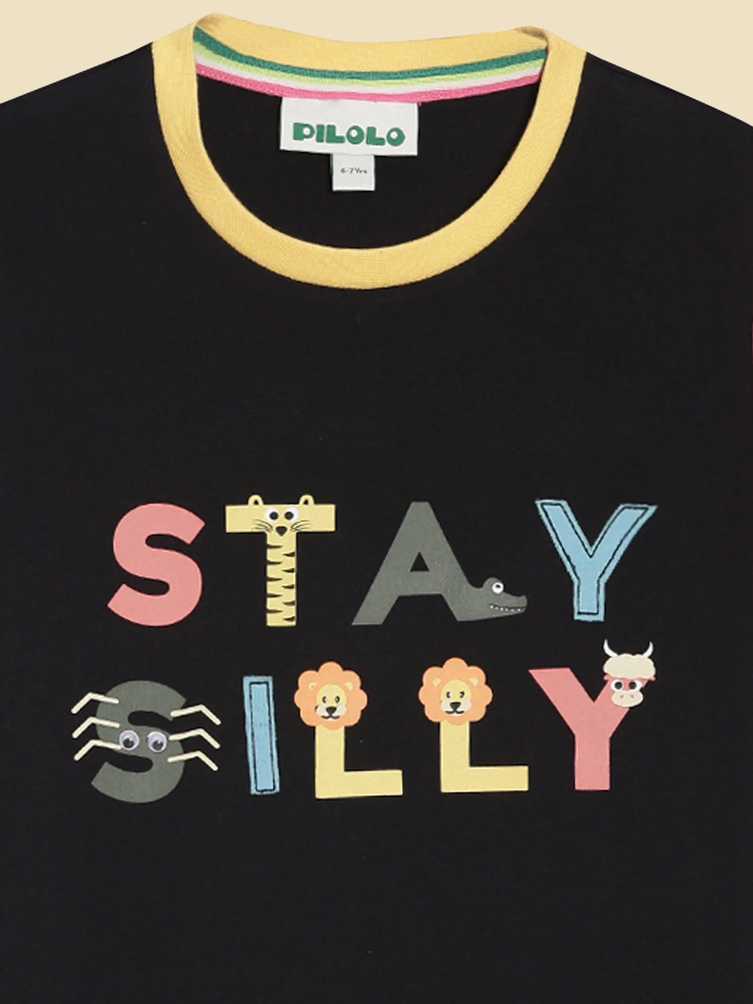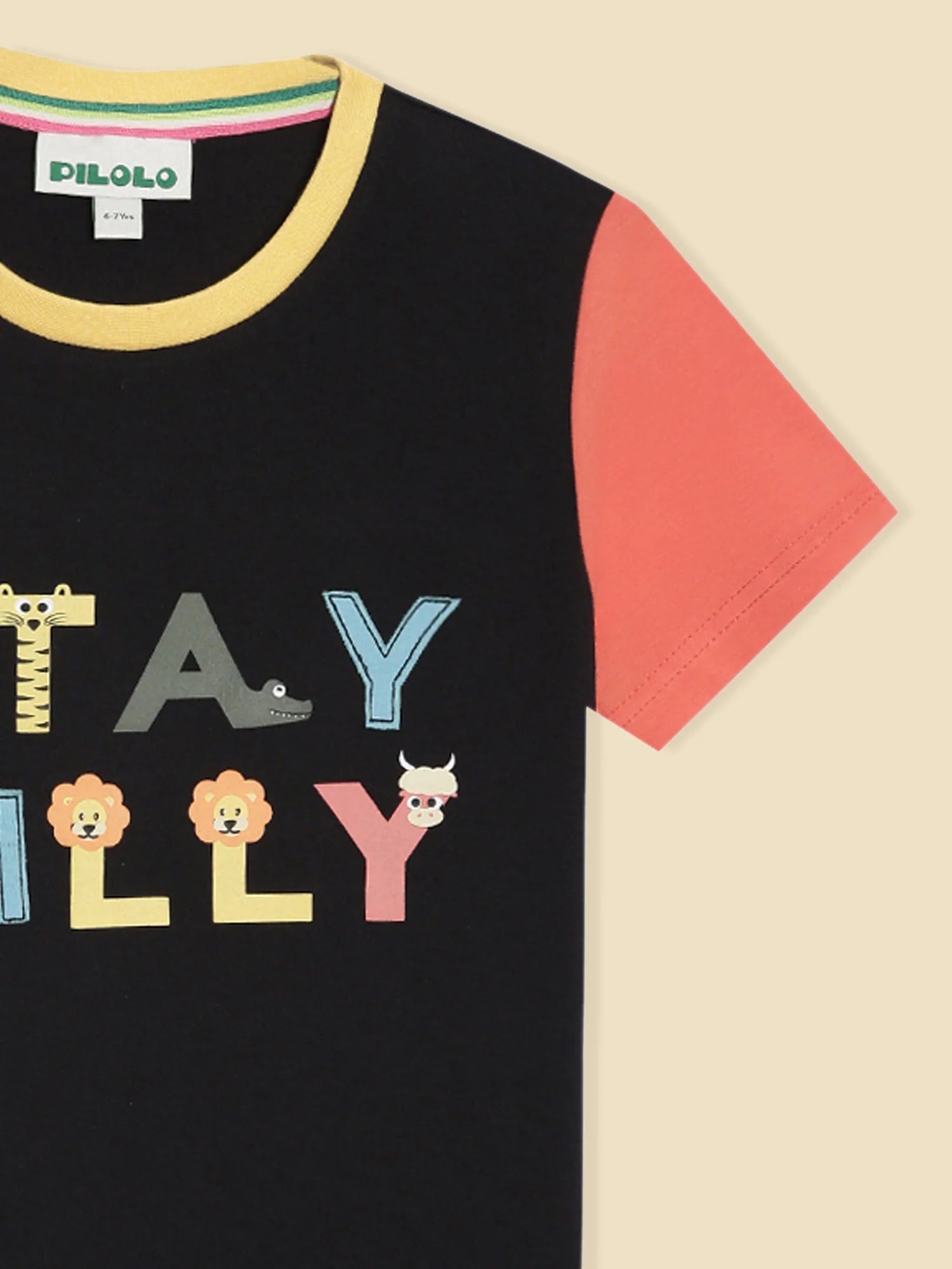 Embrace the adventure in the Silly Safari Tee with its fun prints nad comfy, lightweight fabric that is perfect for endless exploration. Our classic brand tee, with a jungle-inspired vibe, features a contrasting collarband and complementing sleeves. Every piece has a pocket that is adorable and practical - as little hands deserve a place to tuck their little adventures. Made to fit kids 2 to 10.