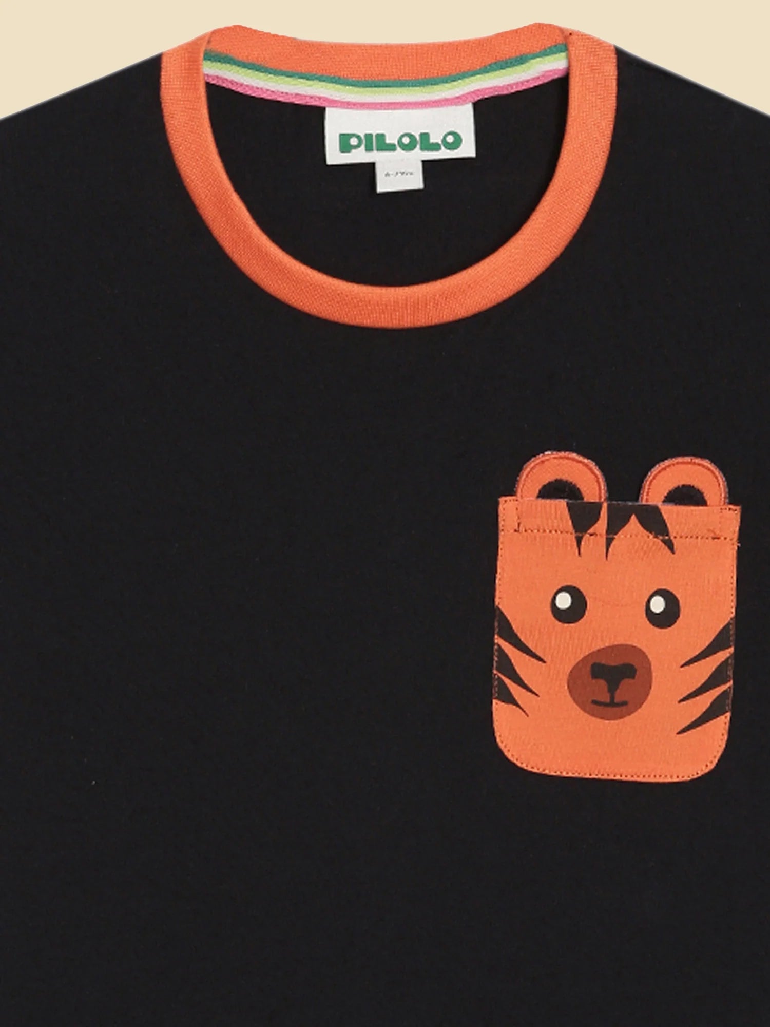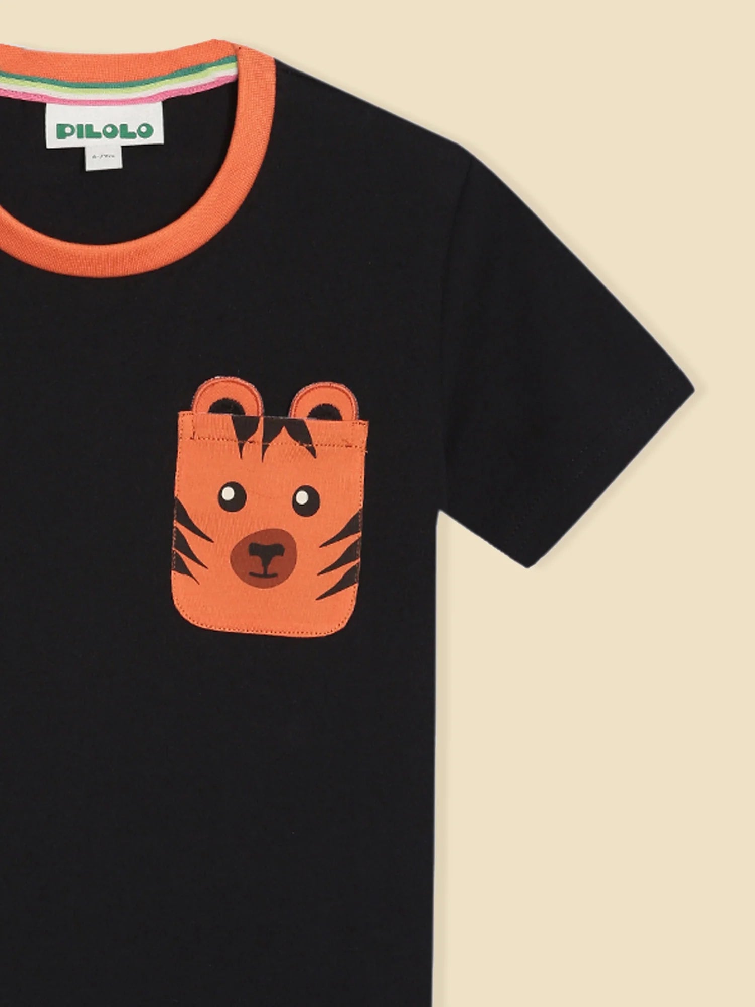 The Terrific Tiger Tee roars with style and ideal for kids who love to explore with confidence. The featured tee from our collectible tee collection, comes with a contrasting neckband, a tiger pocket and back print. Every piece has a pocket that is adorable and practical - as little hands deserve a place to tuck their little adventures. Made to fit kids 2 to 10.