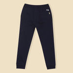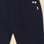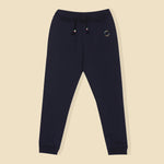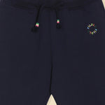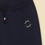 Run, jump and make memories without missing a beat in the Active Navy Joggers. The joggers have aesthetic and practical uses as it features embroidery, pockets, an elastic waist, and drawstrings offering your child a firm fit. Fits kids from 2 to 10. Designed for non-stop adventures, free movement and plenty of giggles. Fit: Regular Fabric: 95% cotton, 5% elastane, French Terry Lycra Care Instruction: Tumble dry with cold water; keep it fresh, do not bleach. Waist: Mid-Rise Color: Navy Blue
