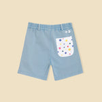 These Pilolo Kids Wear Shorts are made of mock denim in soft jersey. They are styled with polka dots on the back pockets and hems to add a playful surprise to boring denims.