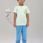 Brighten up your kid's wardrobe with the Friendly Frog Tee to keep them cheerful through the day. The featured tee from our collectible tee collection, comes with a contrasting neckband, a frog pocket and back print. Every piece has a pocket that is adorable and practical - as little hands deserve a place to tuck their little adventures. Made to fit kids 2 to 10.