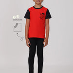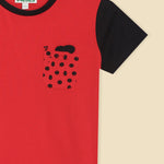 The Lively Ladybug Tee adds a pop of cheer to any day and brings a touch of whimsy with its charming ladybug design and keep your little one buzzing for joy. The featured tee from our collectible tee collection, comes with a contrasting neckband, a ladybug pocket and back print. Every piece has a pocket that is adorable and practical - as little hands deserve a place to tuck their little adventures. Made to fit kids 2 to 10.